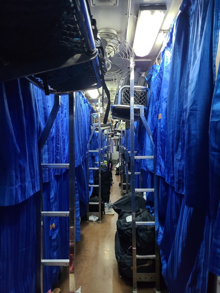 I rarely saw any Thai people riding the long distance sleeper trains. The majority of the people who rode them were foreign travelers. (Is that polite to say? I think I may have lived in Korea too long). So I mistakenly thought that normal Thai people didn’t take them. But then I went into the middle compartment and found all the Thai people. I learned that the sleeper compartments are super expensive for normal people in Thailand and that most of the Thai people were actually in the general admission area and sat on a bench and had to sleep sitting upright. I was so shocked! There were a few native Thai people in the 2nd class train where I was, too, but not nearly as much as the western tourists.