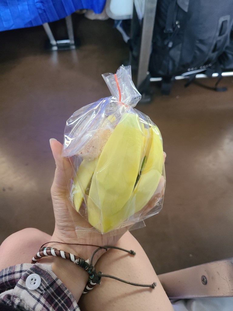 I was so happy on the train the next morning when they sold mangos! I love green mangoes with the dried chilis! It’s my youth! I grew up eating it in my household. Living in Korea, mangoes were so expensive! And they usually had the super fruity ones from Mexico so I was so happy to see green Thai Mangoes! I really love this snack/treat. If you ever have the chance, I really recommend it! It may be a little spicy but it’s so yummy and addictive!