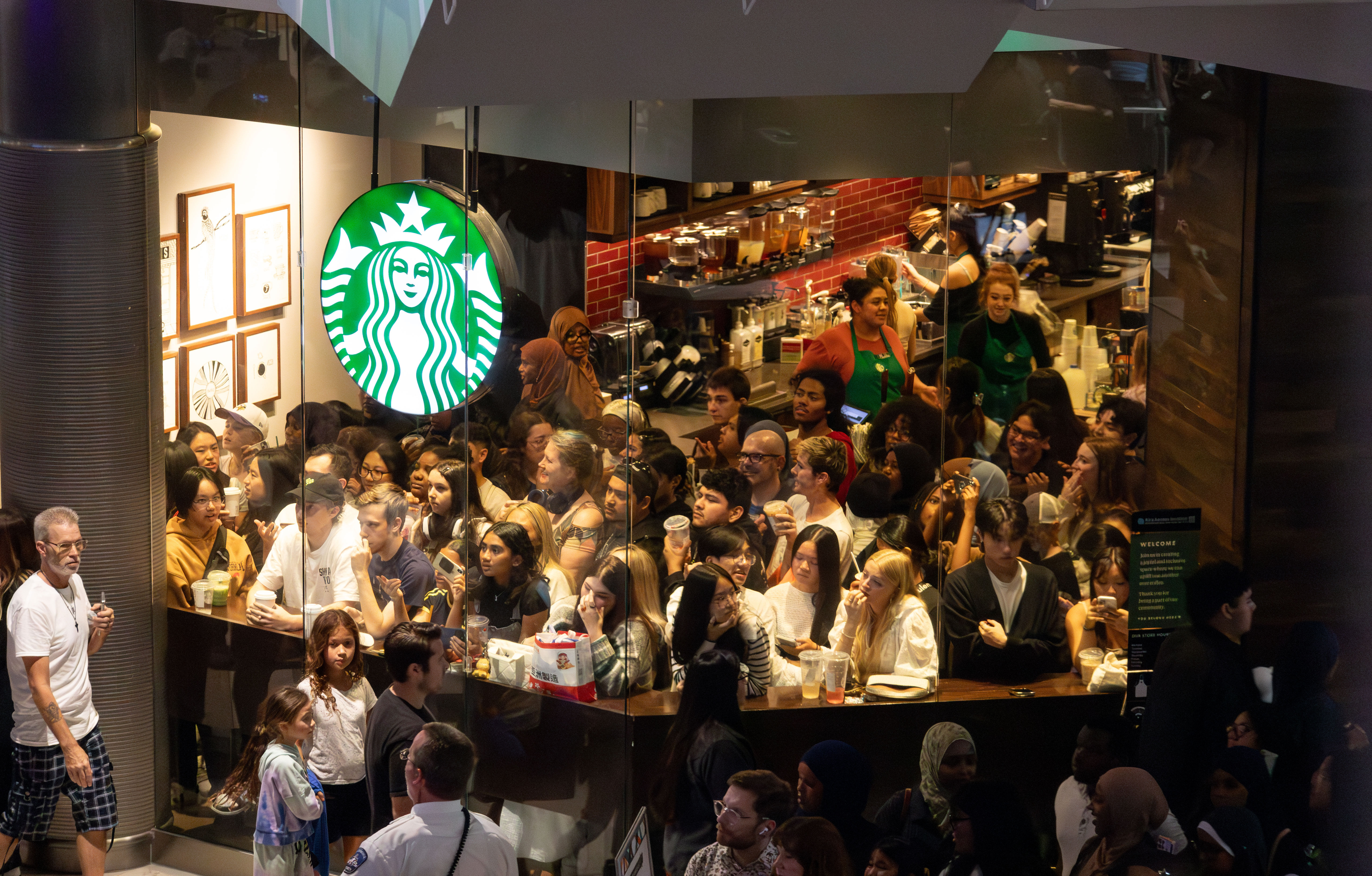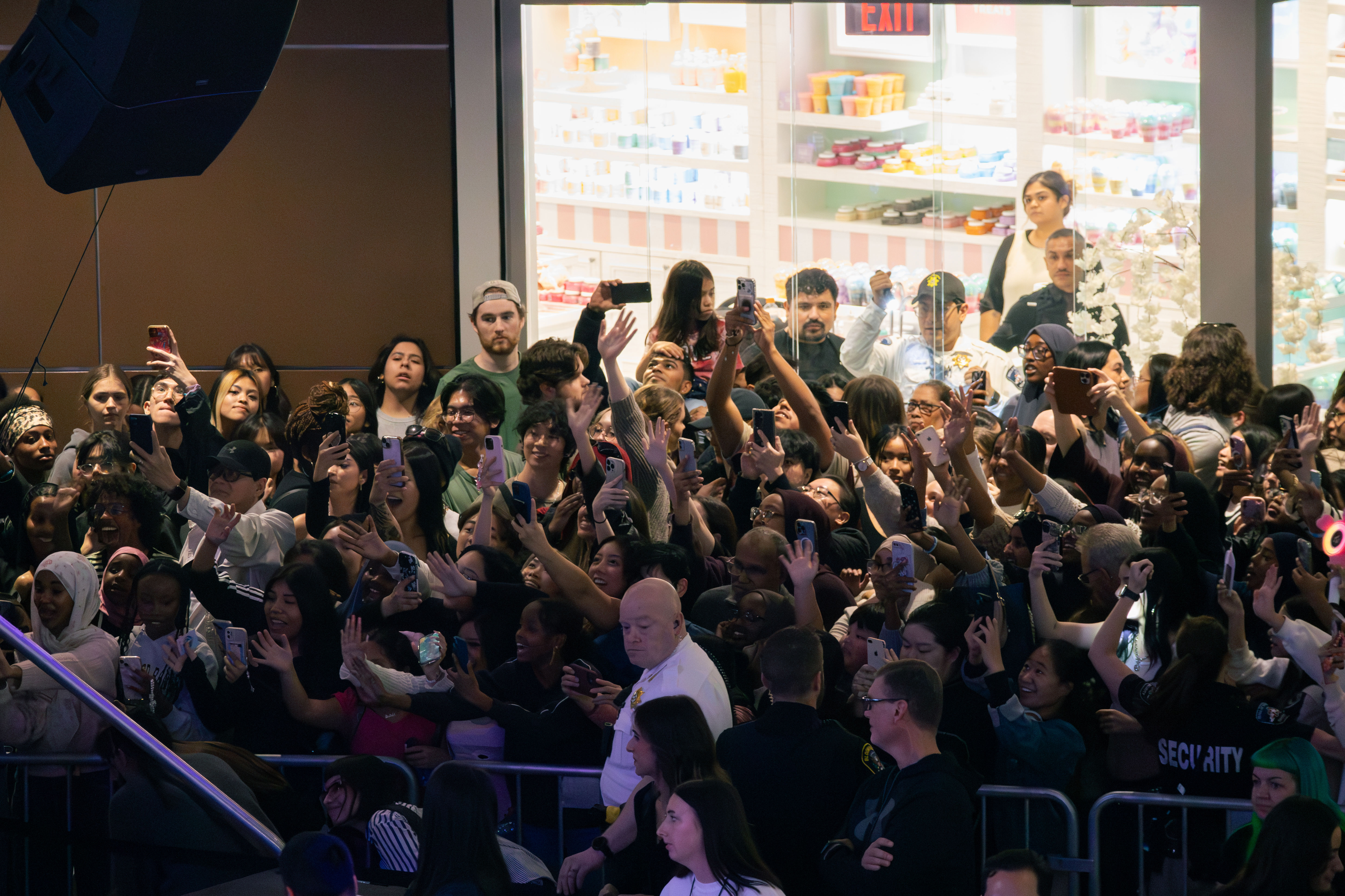 Security faced challenges with many people who refused to move when ordered. Some instances of these challenges included crowds blocking the second floor escalator–preventing people from getting off the escalator–and people blocking designated walking paths for mall goers on the first floor. The area was so congested that many fans resorted to taking the escalators up and down to catch a short glimpse of the girls.
